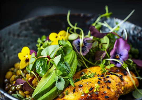 • Anti-entzündliche Superfoods: Kurkuma und Ingwer sind bekannt für ihre starken entzündungshemmenden Eigenschaften, die Zellschäden reduzieren und den Alterungsprozess verlangsamen können. Schwarzer Pfeffer im Hähnchen erhöht die Bioverfügbarkeit von Kurkuma.