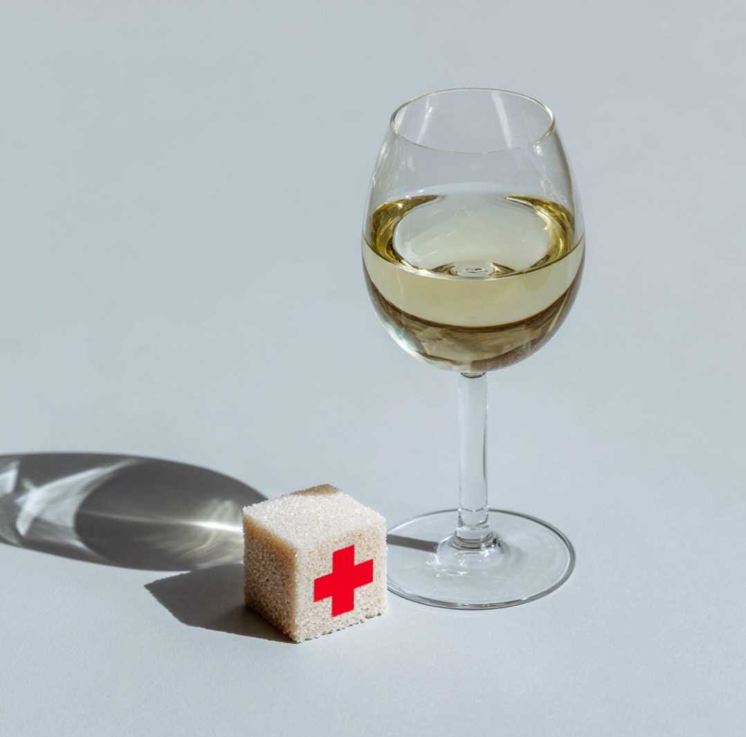 Das bedeutet: Ein Glas trockener Weißwein mag wenig Zucker haben, aber die Wirkung auf den Blutzucker- und Energiehaushalt ähnelt einem Zuckerimpuls.